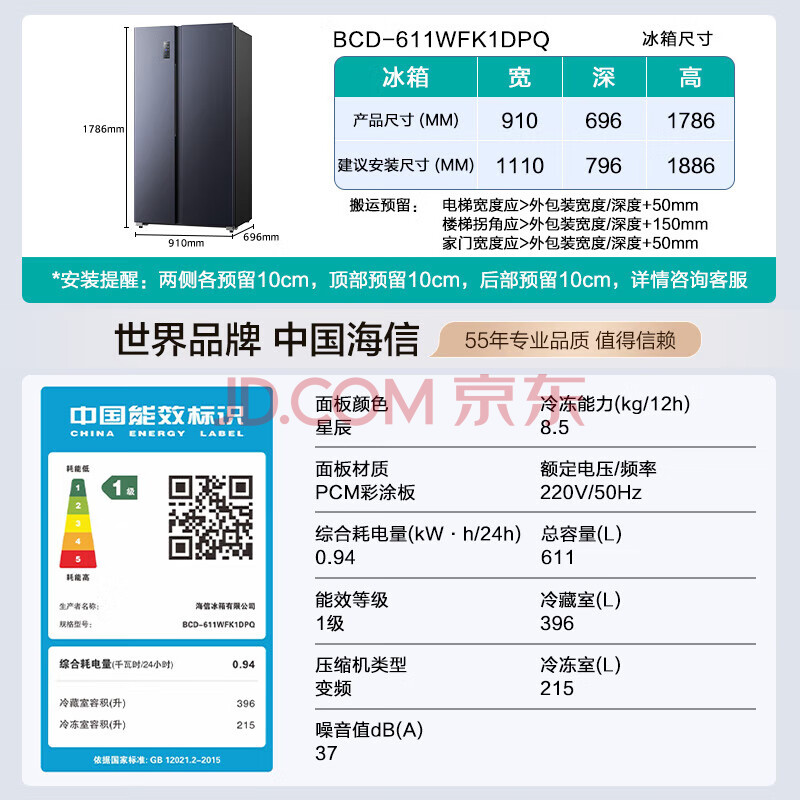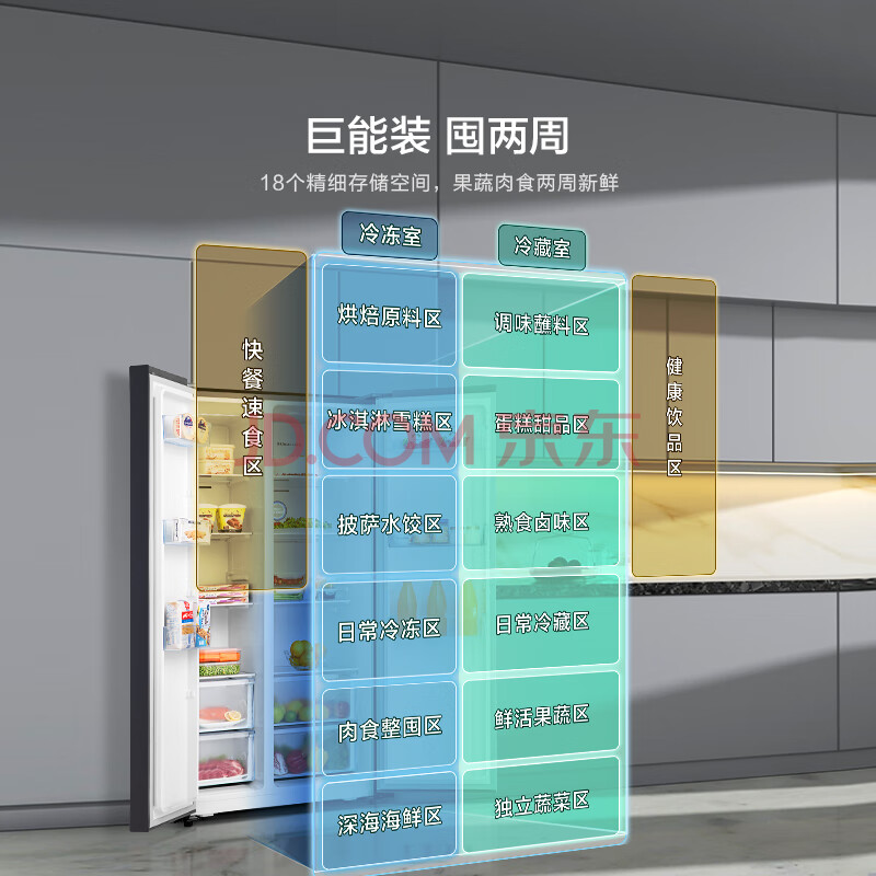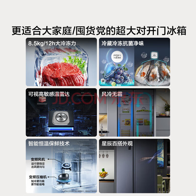 商品相册:海信611L对开门冰箱超大容量一级能效风冷无霜抗菌超薄变频电冰箱灰色双开门BCD-611WFK1DPQ第