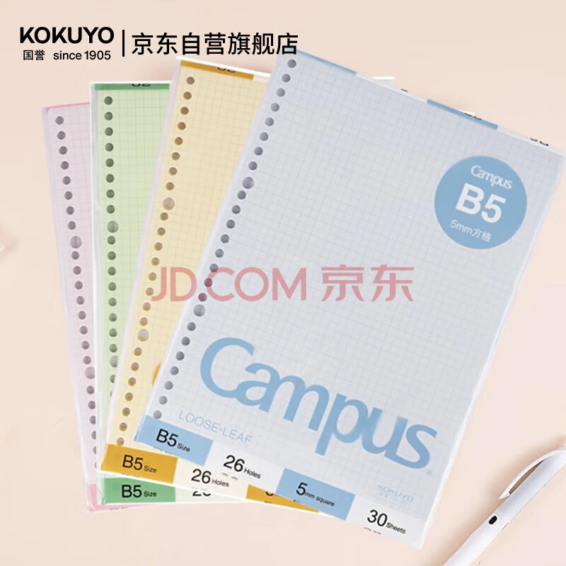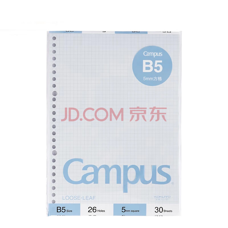 商品相册:国誉(KOKUYO)B5彩色活页纸Campus活页本替芯笔记本子活页纸内页 5mm方格 30张蓝色1本 WCN-CLL1314B第