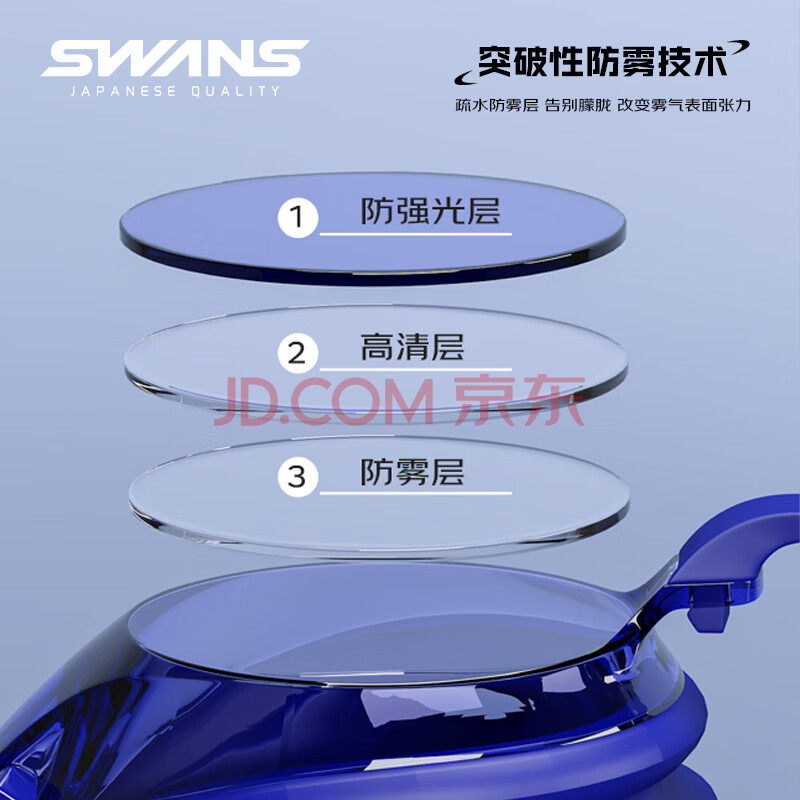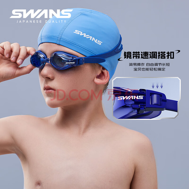 商品相册:SWANS泳镜日本进口防水防雾高清平光儿童游泳眼镜男女士FOX2-4浅蓝第