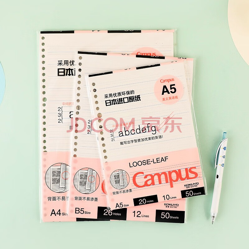 商品相册:国誉(KOKUYO)(KOKUYO)A5活页纸Campus活页本替芯笔记本子活页纸内页 美文英语线 50张/本 1本 WCN-CLL3522第