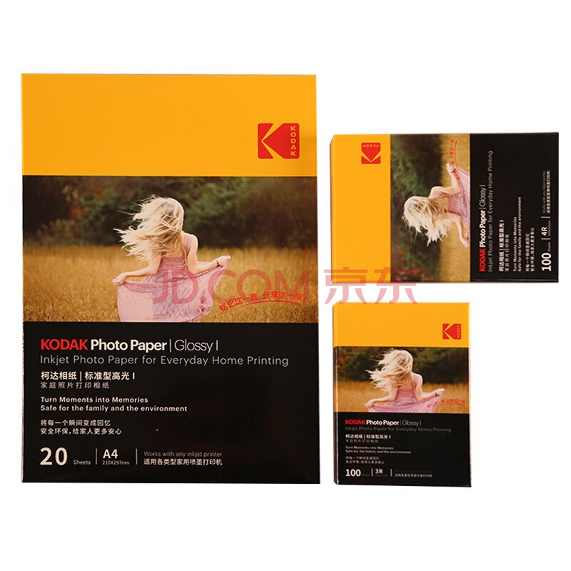 商品相册:KODAK柯达 A4 200g家用型高光面打印相片纸/喷墨打印照片纸/相纸 20张装9891-436第