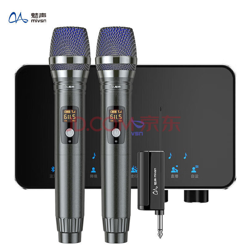 商品相册:魅声(双麦)无线收音麦克风声卡直播套装 抖音主播户外唱歌动圈话筒设备全套 电视手机电脑合唱k歌第
