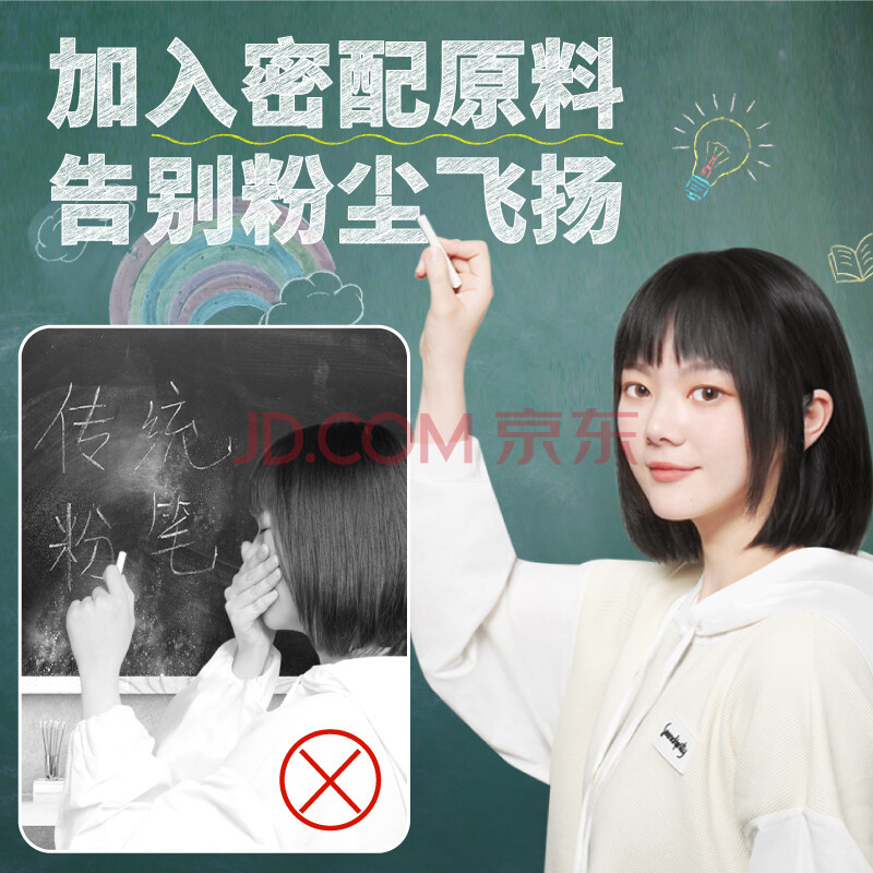 商品相册:DSB迪士比 圆形白色100支/盒 白色粉笔无尘粉笔儿童家用教师黑板报专用幼儿园涂鸦黑板笔 CK-1106第
