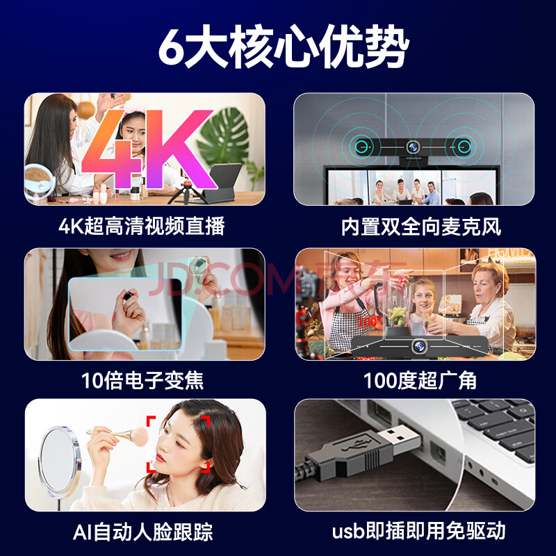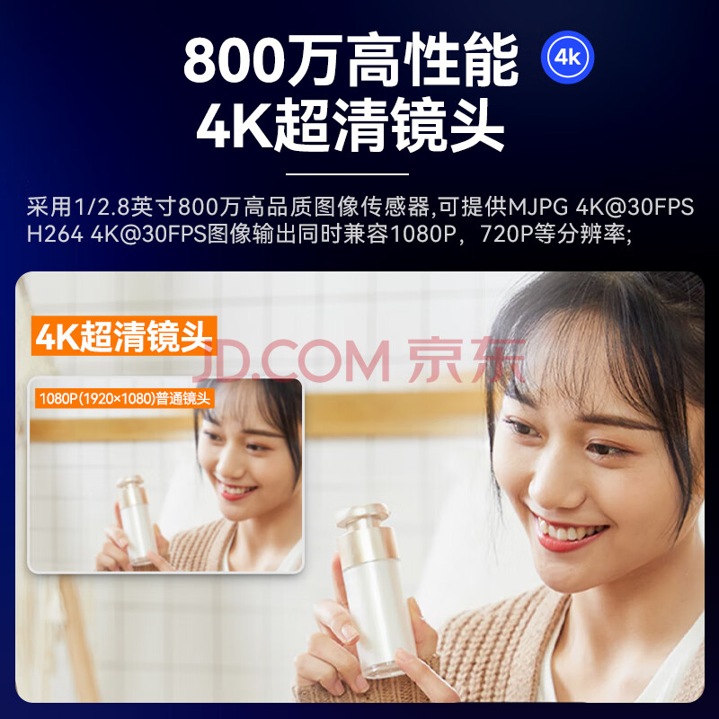 商品相册:HIKVISION海康威视直播摄像头4K超高清100°广角镜头内置双麦克风USB视频会议网红带货直播D5ACAM100D第1张/共9