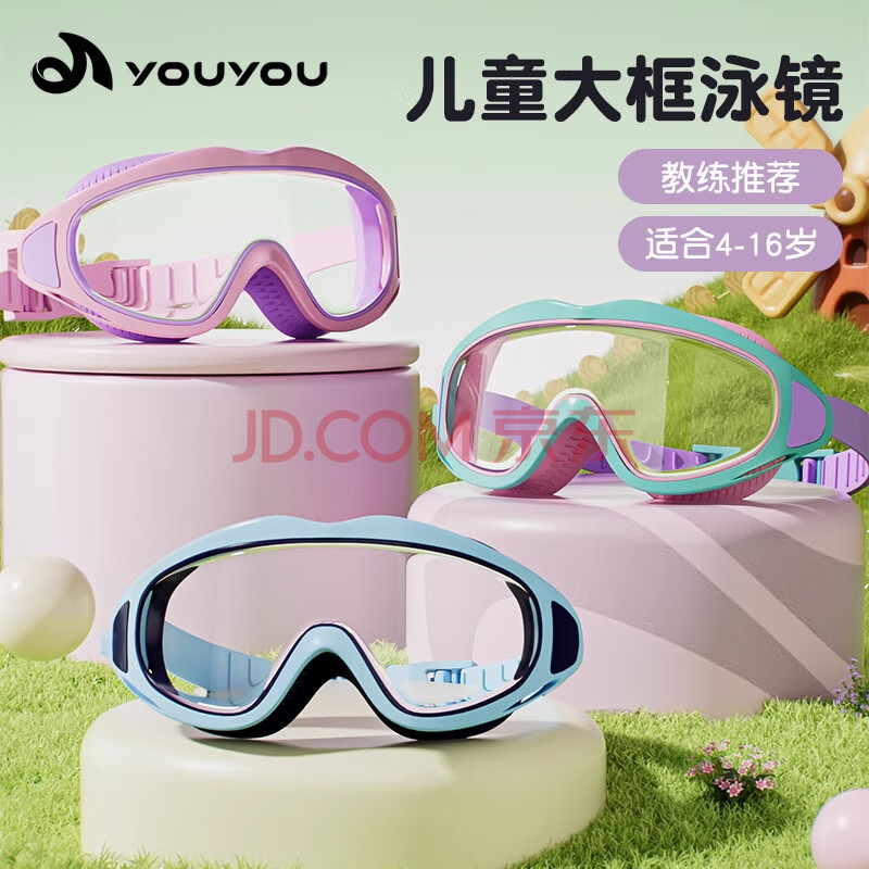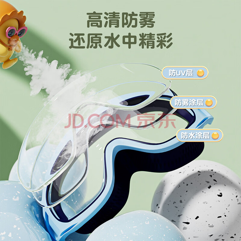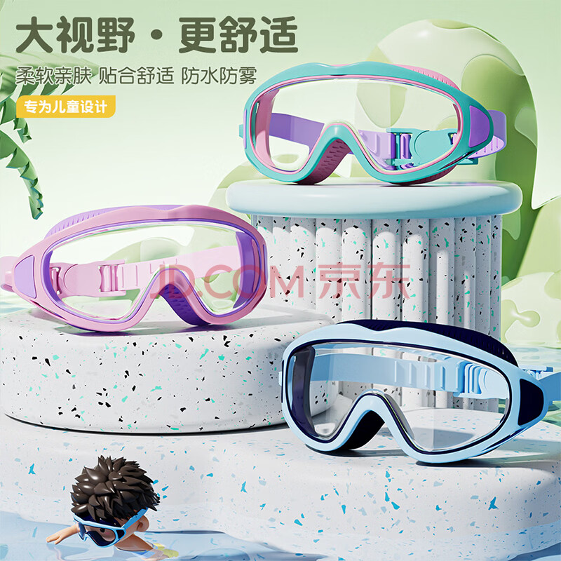 商品相册:佑游儿童泳镜男女防水防雾游泳馆洗澡大框泳镜五件套61412 冲浪冰湖蓝第