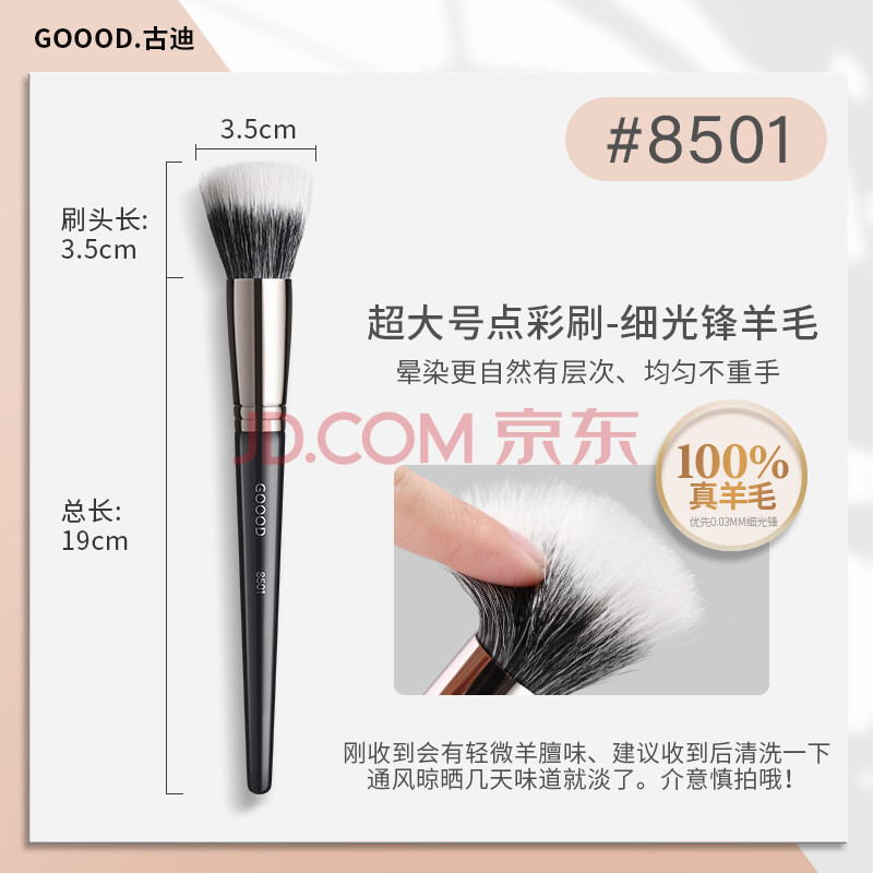 商品相册:古迪GOOOD 8501超大号羊毛腮红刷 点彩刷 化妆刷 高光刷 散粉刷(初学者专业单支装化妆工具 刷子 带保护套)第