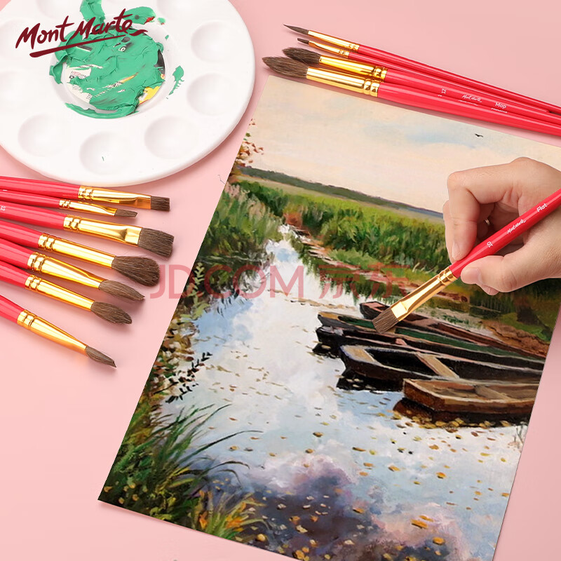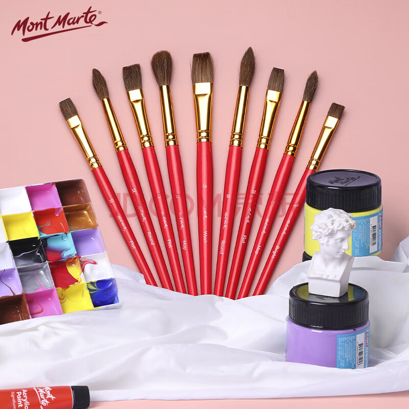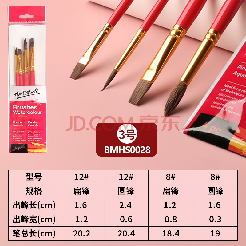 商品相册:【全网低价】蒙玛特(Mont Marte)4支装水彩画笔 水粉笔儿童绘画笔勾线笔学生美术颜料笔 初学马毛画画排笔套装BMHS0028美术写生第