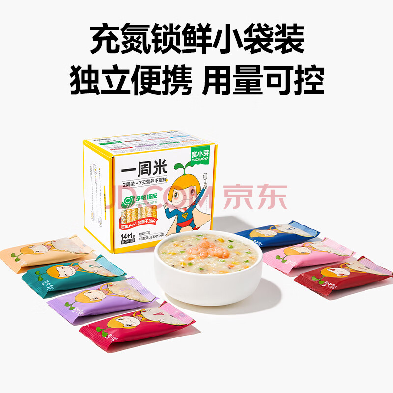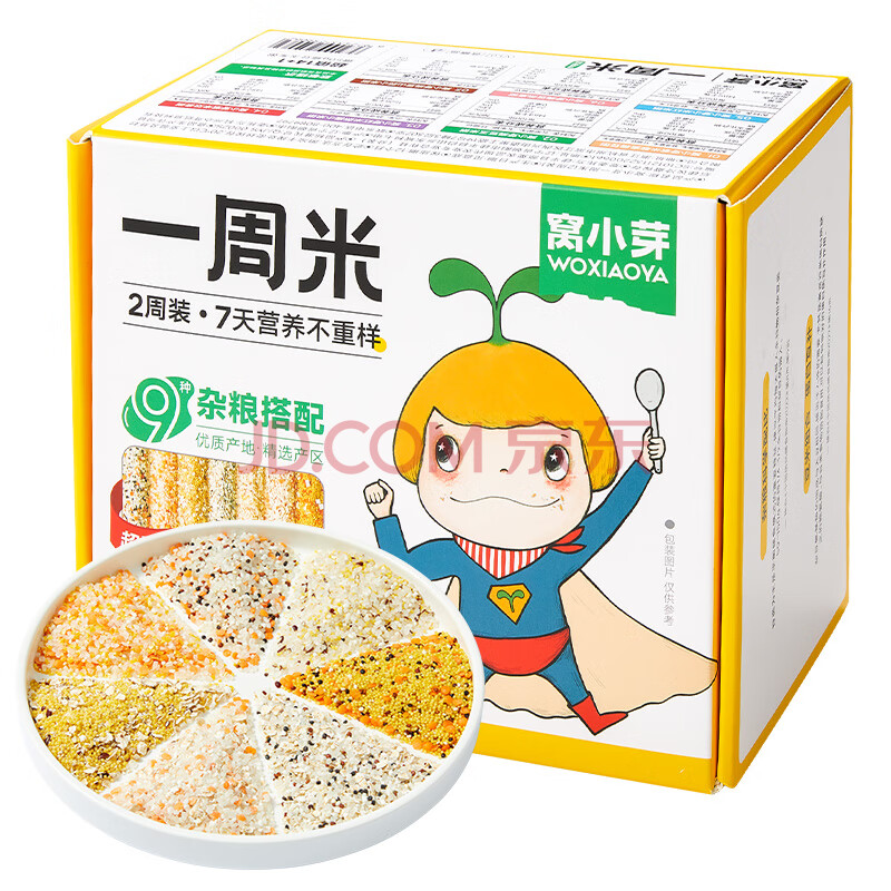 商品相册:窝小芽一周米50g*15两周装 谷物米糊营养杂粮米粥儿童早餐享宝宝辅食谱第