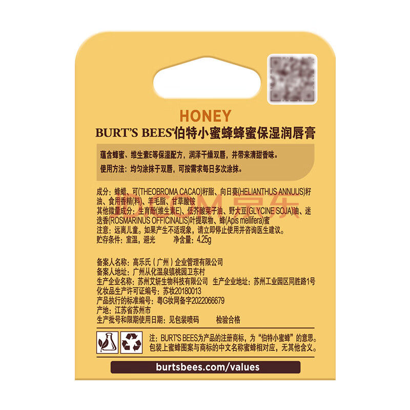 商品相册:伯特小蜜蜂(Burt's Bees)经典润唇膏男女通用天然保湿滋润清爽不油腻无色打底 蜂蜜味4.25g第