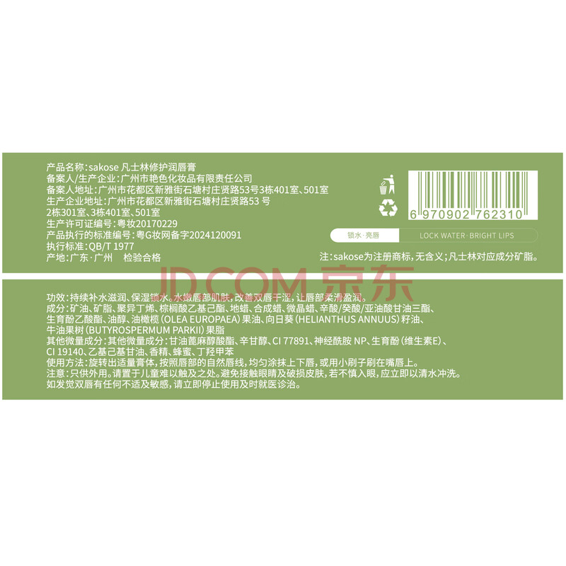 商品相册:sakose凡士林修护润唇膏2支5.6g 四季防干裂起皮保湿补水女唇膜滋润唇纹第