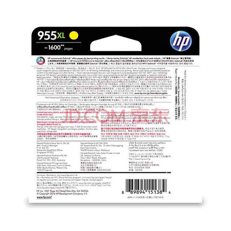 商品相册:惠普(HP)955XL(L0S69AA)原装墨盒黄色大容量 适用hp 8210/8710/8720/7720/7730/7740第