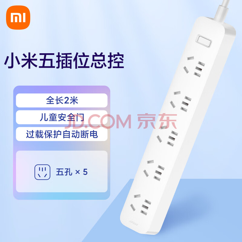 商品相册:小米(MI)米家5孔位宿舍插线板【一件包邮】/过载保护/插座/插排/排插/全长2米适用电暖器/热水器/电热毯第