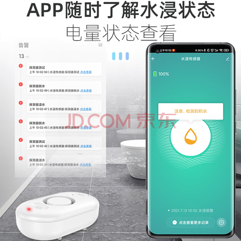 商品相册:凌防(LFang)WD62 远程通知水浸传感器家用WIFI水位水浸漏水探测APP报警器第