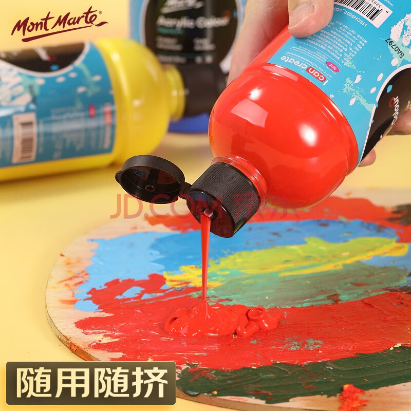 商品相册:蒙玛特(MontMarte)丙烯颜料12色500ml美术墙绘丙烯颜料画笔调和液防水颜料VMSCH500-12S美育工具第