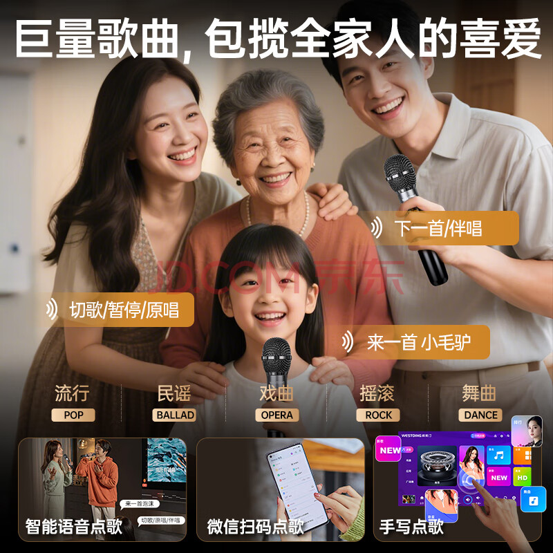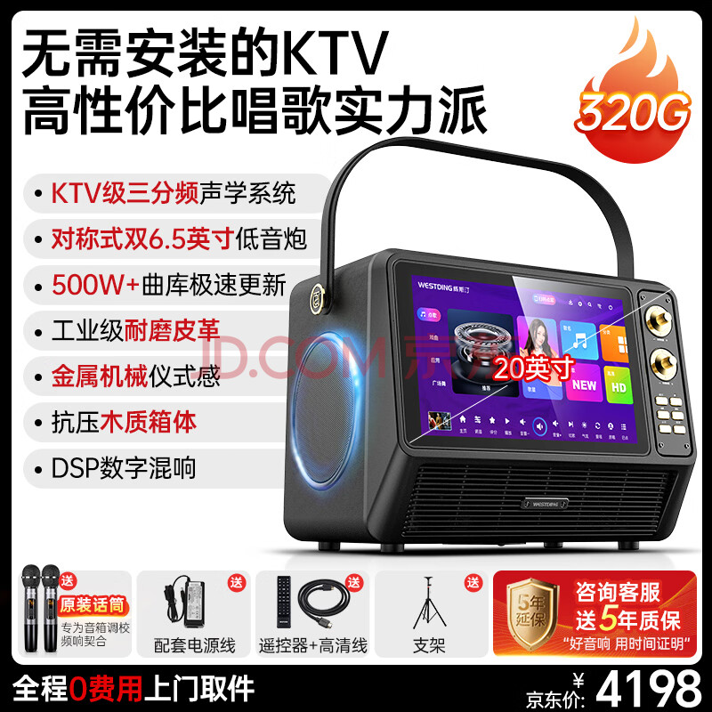 商品相册:威斯汀ktv音响家庭k歌一体机 卡拉ok点歌机显示屏 户外便携广场舞蓝牙音箱GLE320-320G家用版 第