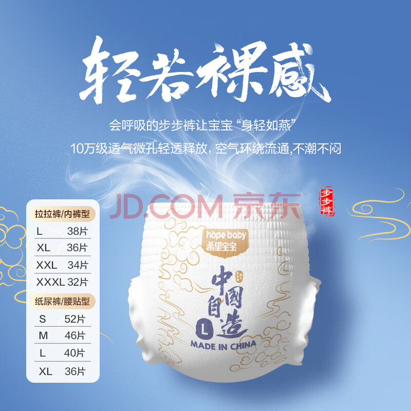 商品相册:希望宝宝婴儿纸尿裤中国自造超薄透气尿不湿XL36片【品牌直供 安心品质】第