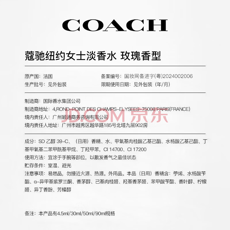 商品相册:蔻驰(COACH)纽约女士淡香水50ml礼盒白玫瑰生日礼物送女友香氛持久留香第