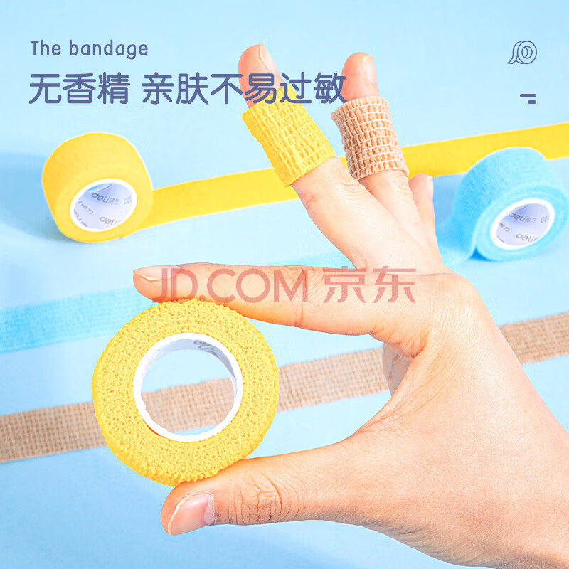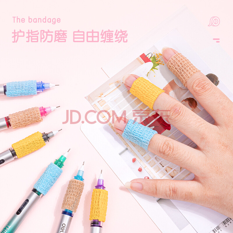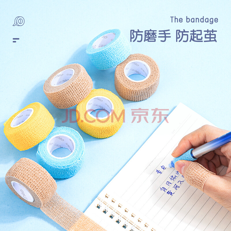 商品相册:得力(deli)学生写字护指绷带 无味防磨防茧自粘弹性绷带 关节护指套25mm*4m 3卷装 混色30602第