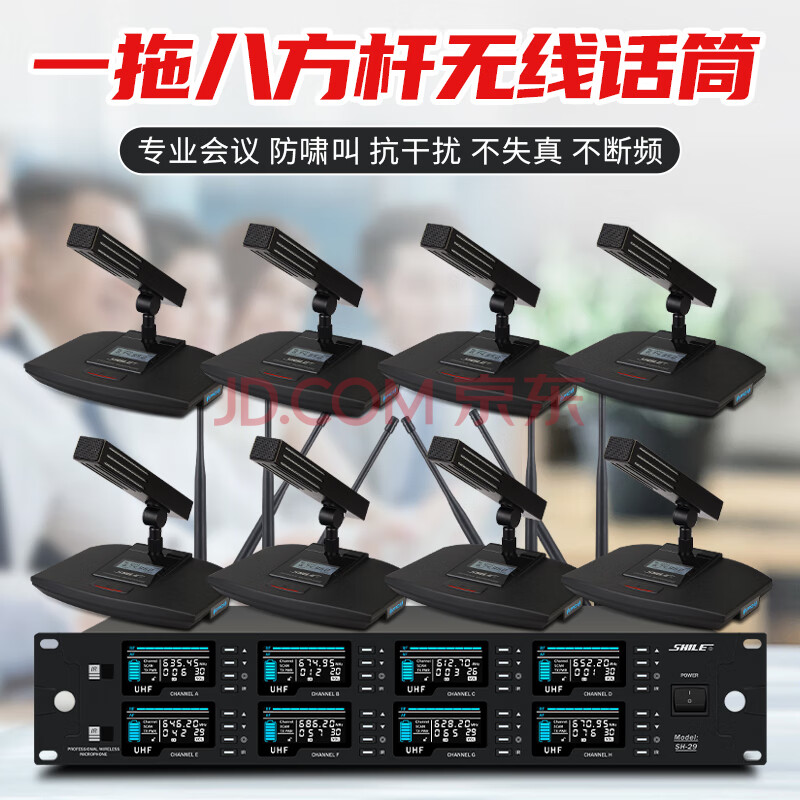 商品相册:狮乐(SHILE)SH-29 专业一拖八会议室演讲主持麦克风 无线U段政企会议桌面鹅颈话筒方杆式第