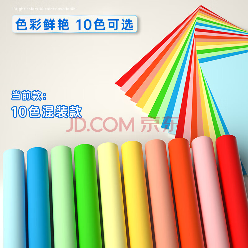商品相册:得力(deli)A4 80g10色混装复印纸 彩纸打印纸 儿童手工折纸非硬卡纸 5包/箱 (2500张/箱)7788【企业优选】第