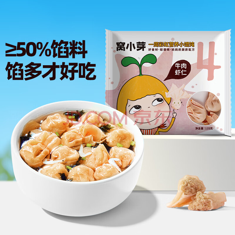 商品相册:窝小芽 一周营养小馄饨饺子儿童早餐食品零食135g(牛肉虾仁)第