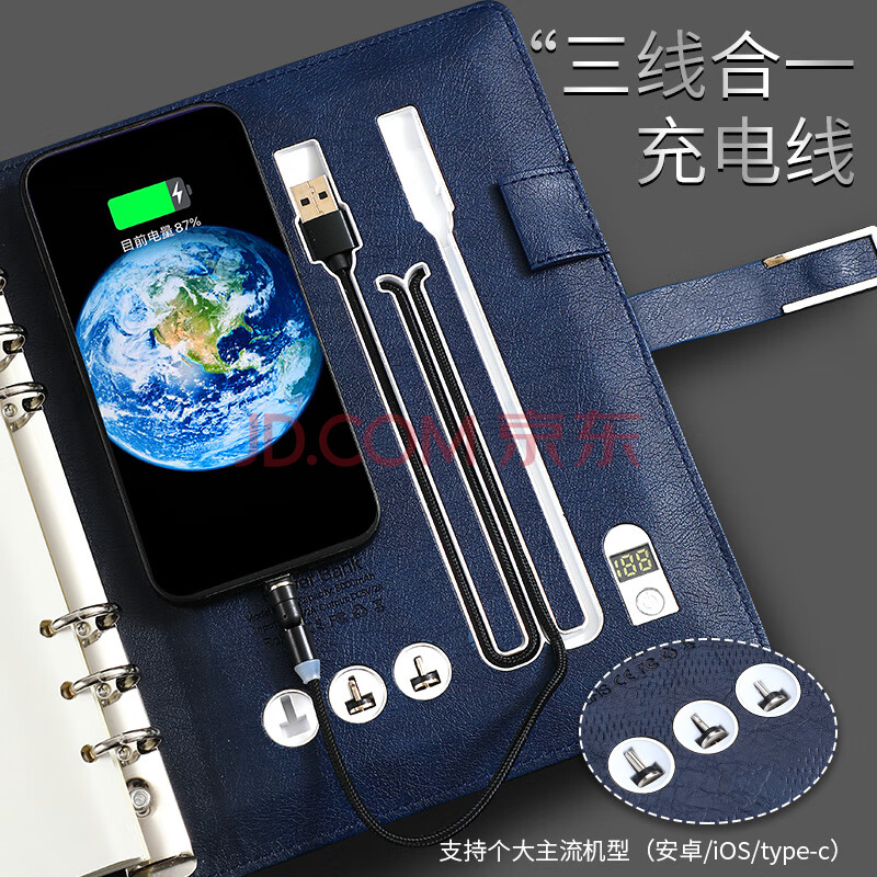 商品相册:嘉然恒 多功能移动电源本可充电笔记本本子礼盒套装A5商务伴手礼活页记事本有线无线充电本送礼品可定制第