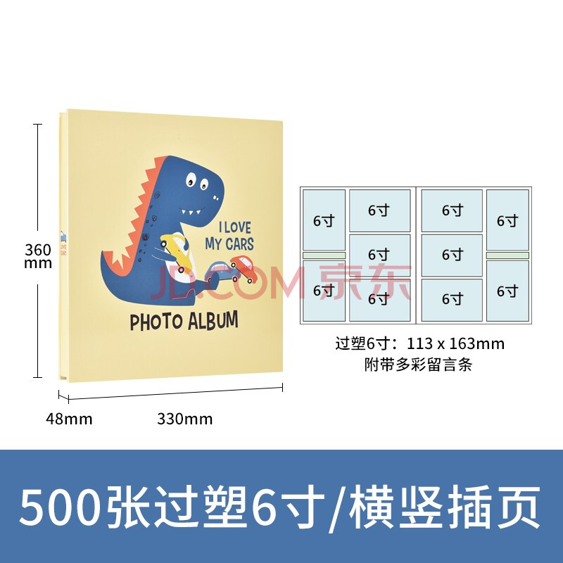 商品相册:Nakabayashi仲林插袋式相册本500张6寸/过塑通用大容量纪念插页式影集/家庭相薄照片书 小恐龙 NBPK500-GS6-1第