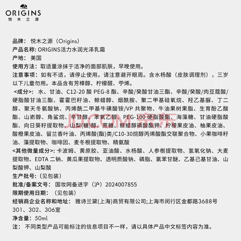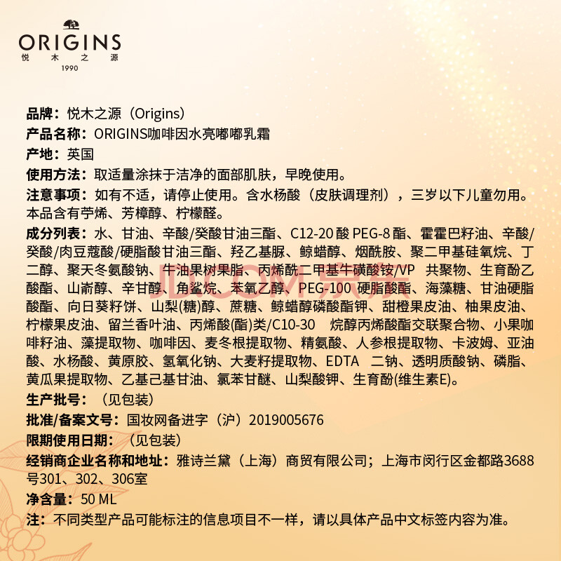 商品相册:悦木之源(Origins)咖啡因水光保湿乳霜50ml补水烟酰胺提亮护肤品套装生日礼物送女友第