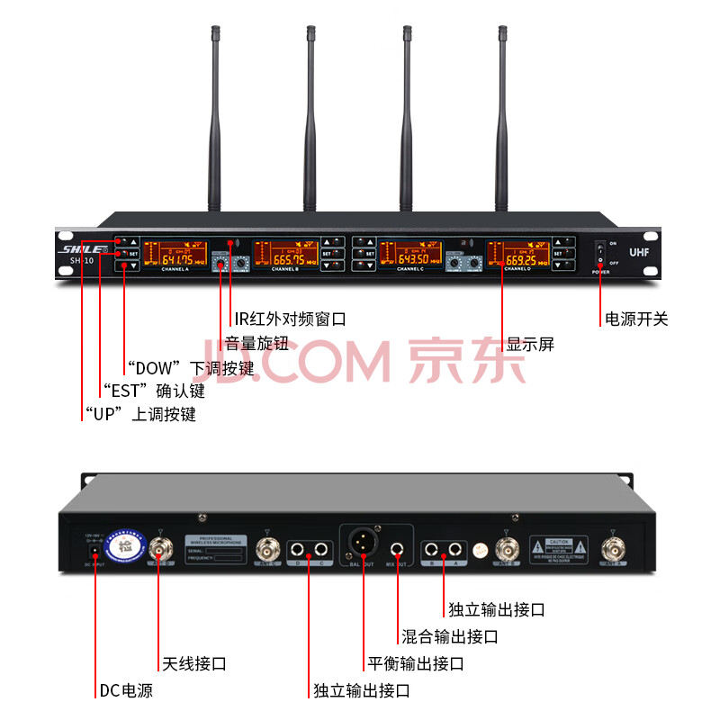 商品相册:狮乐(SHILE)SH-10专业一拖四U段防啸叫无线手持话筒 KTV娱乐唱歌会议主持演讲手拿麦克风 配4手持第