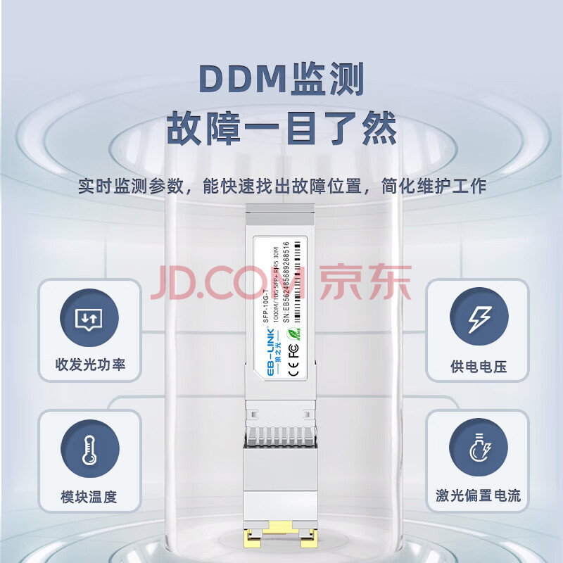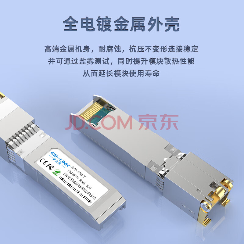 商品相册:EB-LINK SFP+万兆电口光模块30米10G光转电模块光纤口转RJ45电口自适应兼容华为/锐捷/中兴/威联通第