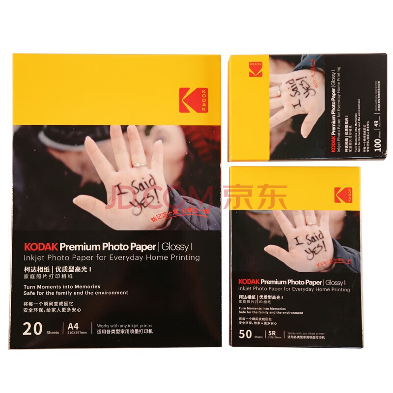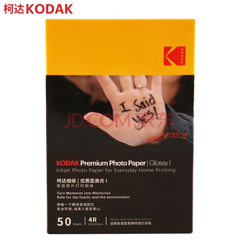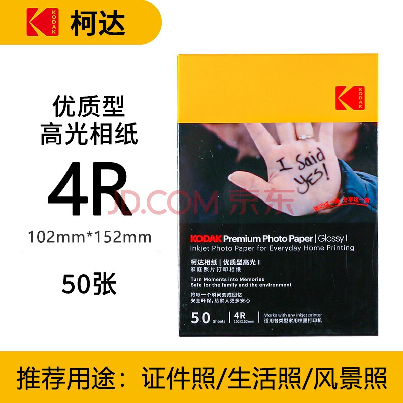 商品相册:KODAK柯达 4R/6英寸 250g 家用优质型RC高光面打印相片纸/喷墨打印照片纸/相纸 50张装9891-446第