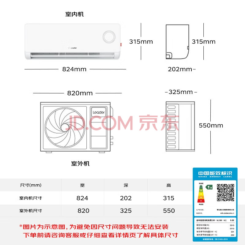 商品相册:海尔出品统帅空调超省电1.5匹空调挂机壁挂式AI省电新一级变频节能自清洁 KFR-35GW/LPA1-1第1张/共5