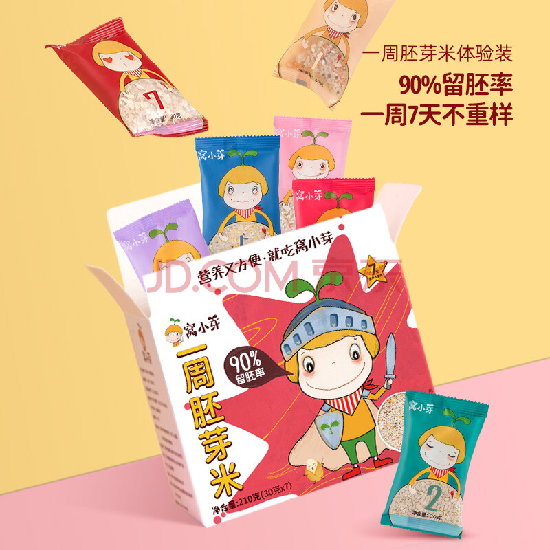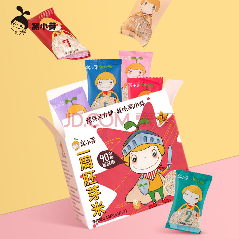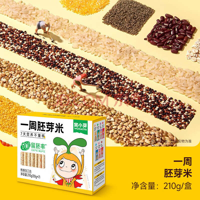 商品相册:窝小芽一周胚芽米210g/盒 自制辅食米粉营养大米13种谷物享儿童辅食食谱第