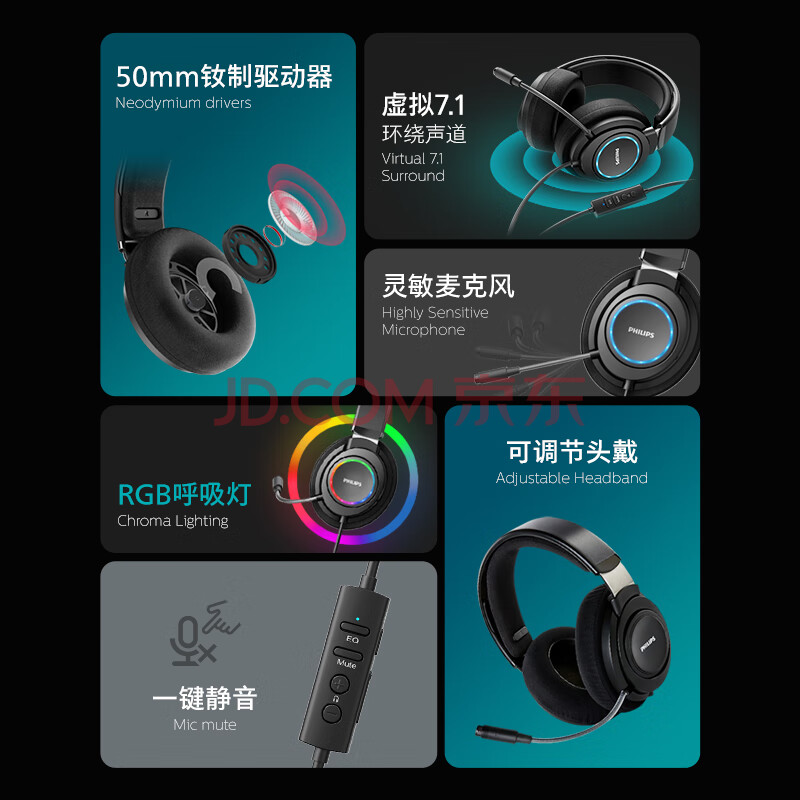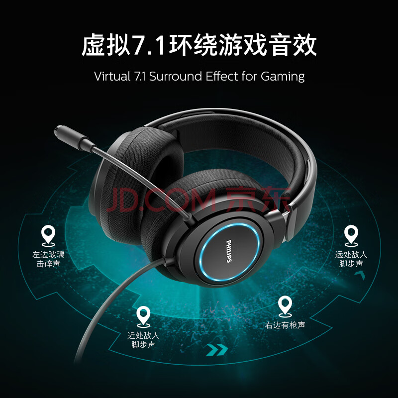 商品相册:飞利浦(PHILIPS)电竞职业专业游戏耳机G6105 USB听声辨位FPS吃鸡三角洲 7.1声道HiFi头戴式电脑麦克风一键静音第