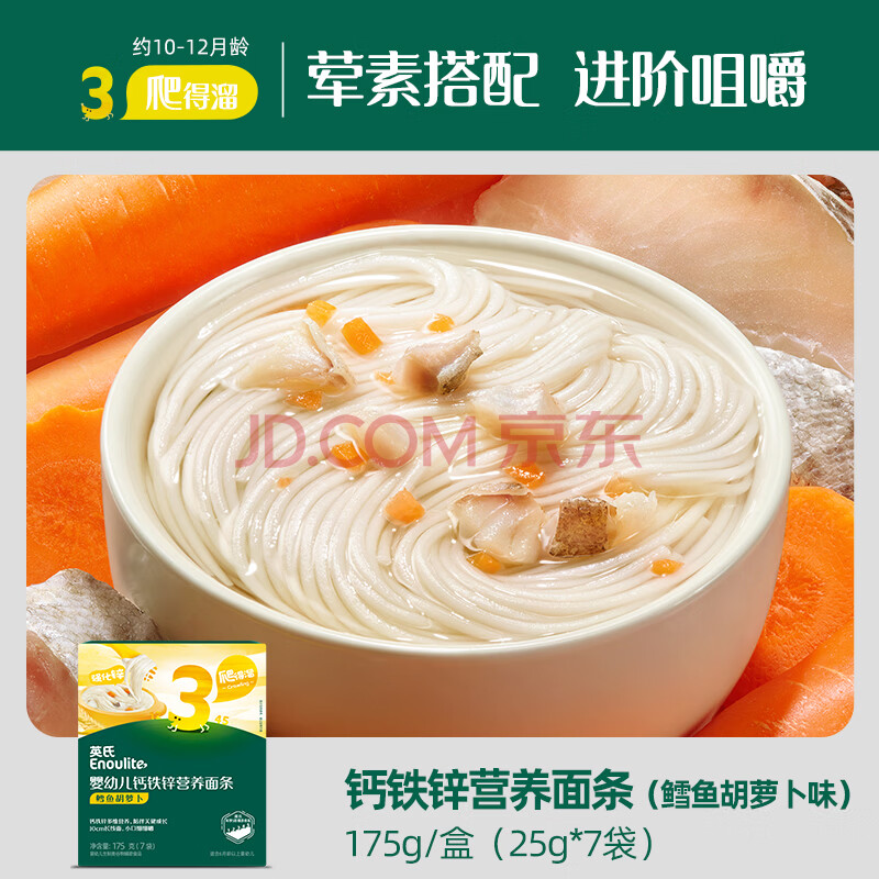 商品相册:英氏婴幼儿面条鳕鱼胡萝卜味175g 辅食线面儿童早餐营养长直面 真验厂第