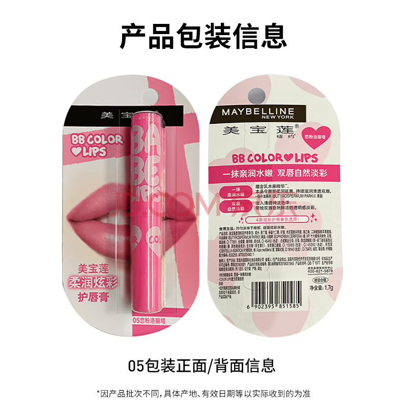 商品相册:美宝莲宝蓓爱炫彩润唇膏 05恋粉洛丽塔 保湿滋润1.7g 生日礼物女第