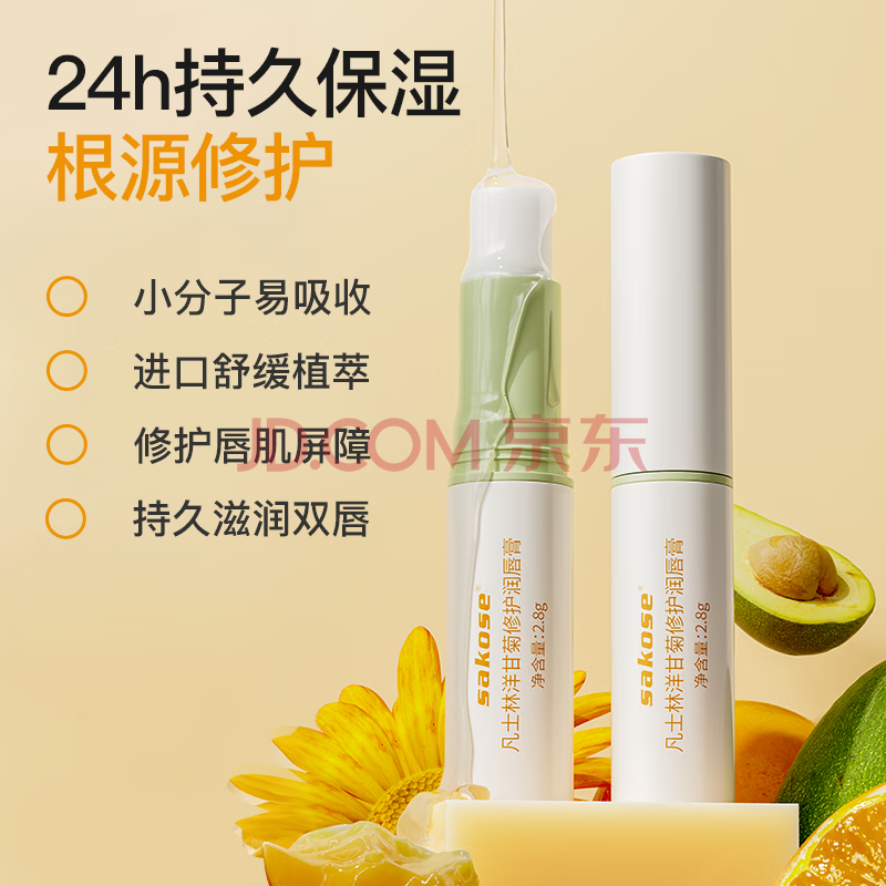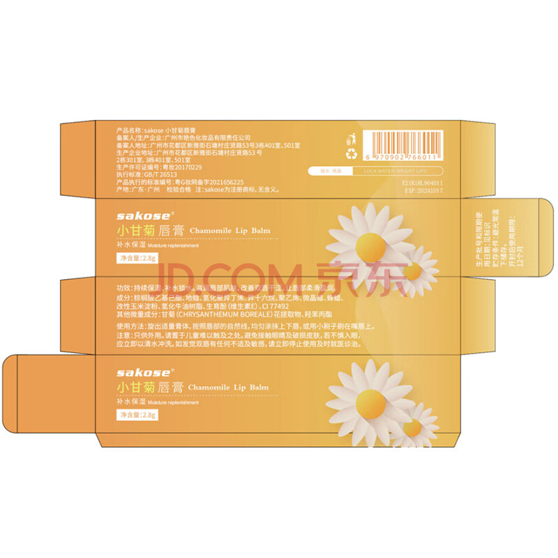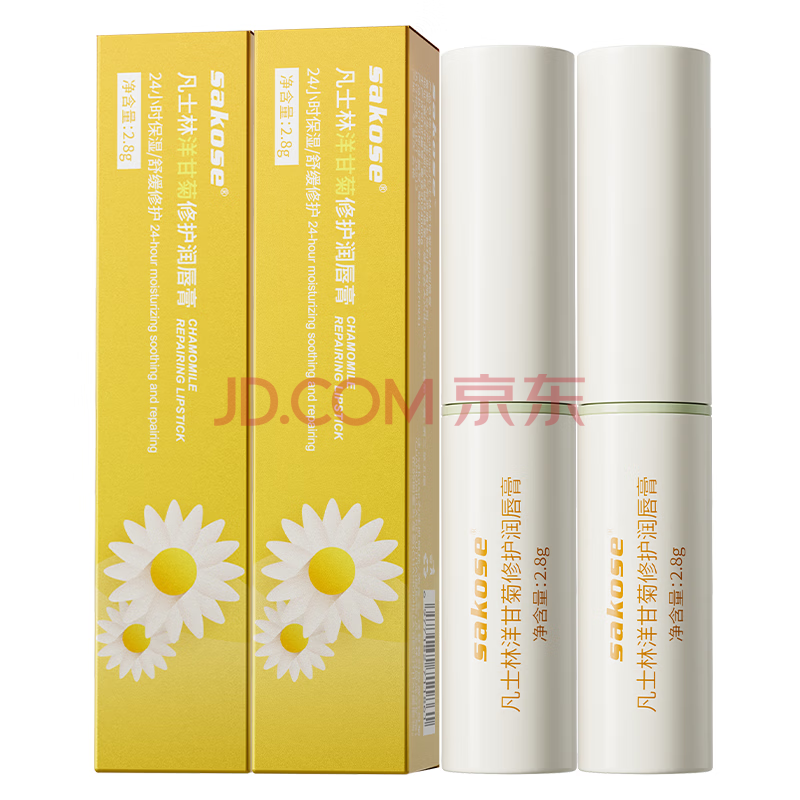 商品相册:sakose洋甘菊润唇膏2支装共5.6g 男女士四季养护防干裂唇膜保湿舒缓修护第