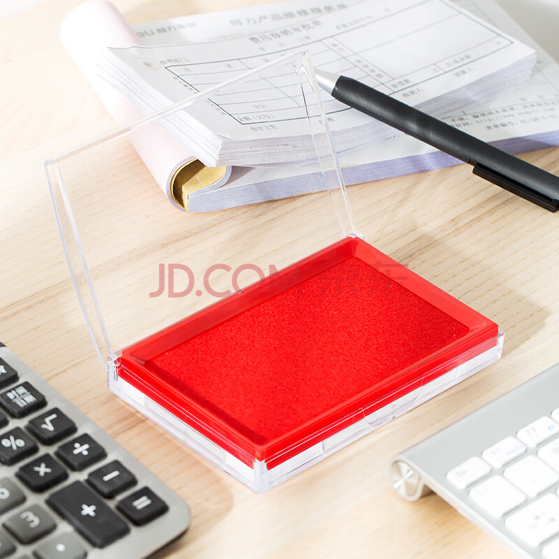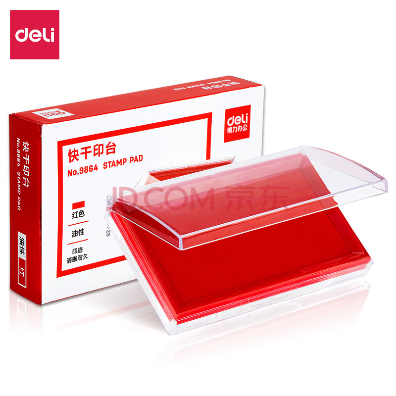 商品相册:得力(deli) 快干印台 方形速干印台印泥 透明外壳方形印台137*88mm 办公集采财务用品 红色 1个装 9864第