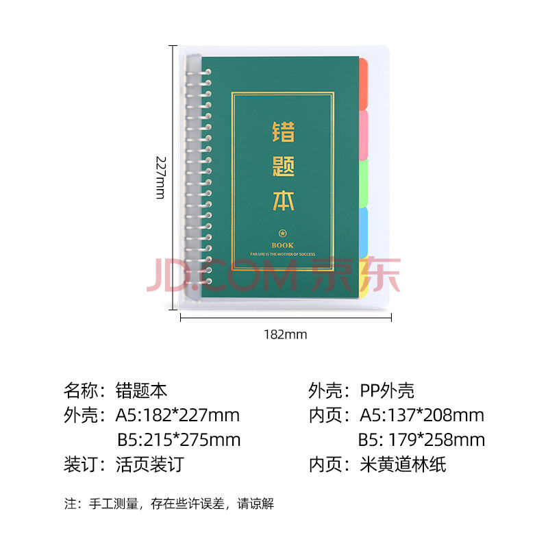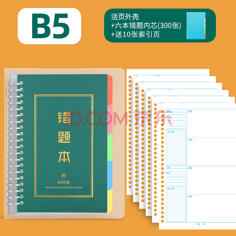 商品相册:法拉蒙faramon B5错题本初中高中活页可拆卸加厚考研大学生英语改错本小学生纠错本 6内芯*1外壳*10张索引页第