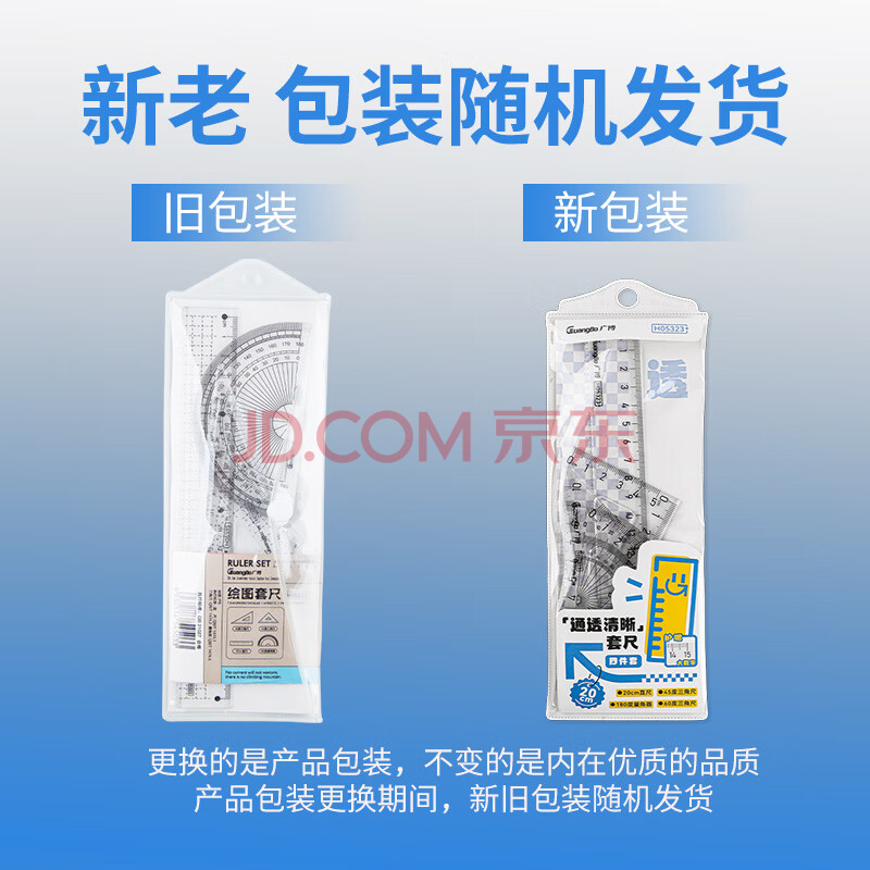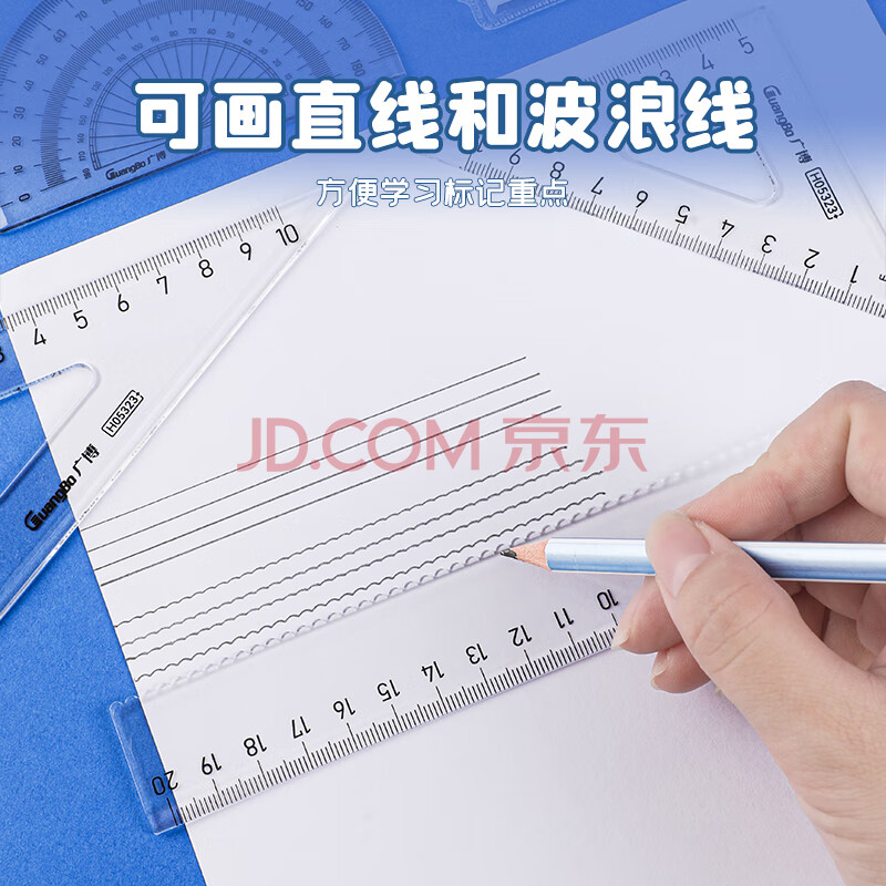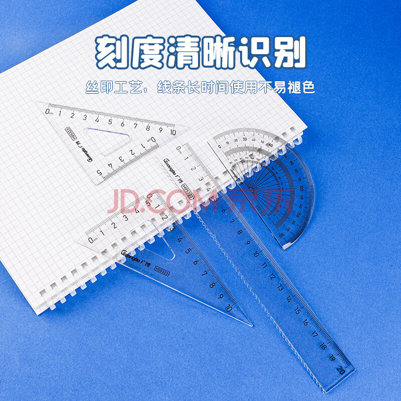 商品相册:广博(Guangbo)学生文具 绘图考试套尺 无印风 (直尺+三角尺*2+量角器)组合装 H05323第1张/共5