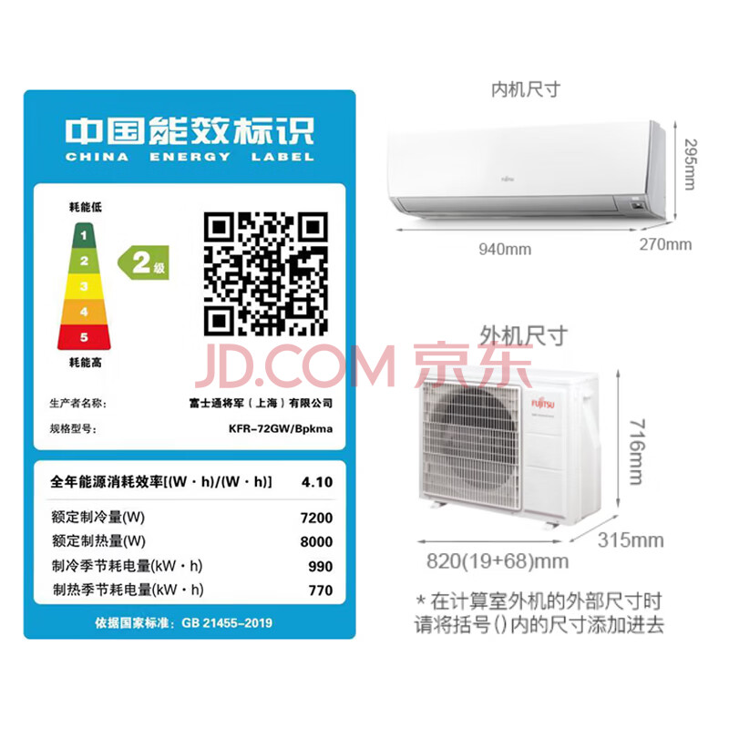 商品相册:富士通空调KM系列 3匹2级能效26-40㎡适用 智能变频省电铜管空调 挂机ASQG24KMCA (KFR-72GW/Bpkma)第