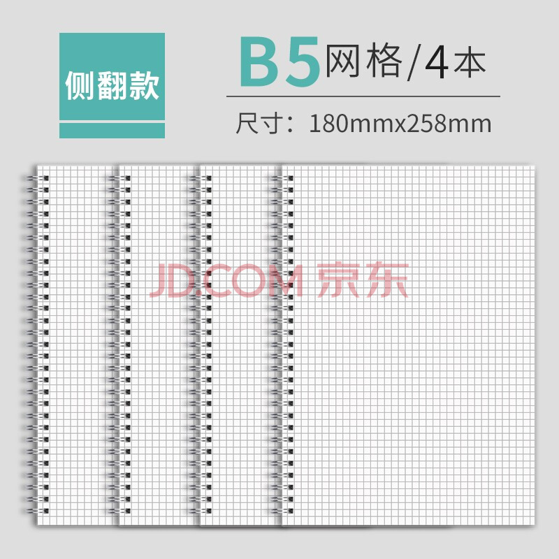商品相册:法拉蒙 faramon 侧翻线圈本加厚活页本网格本笔记本子b5软面抄学生英语错题本日记本方格本4本装第