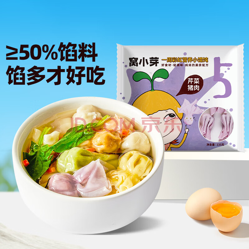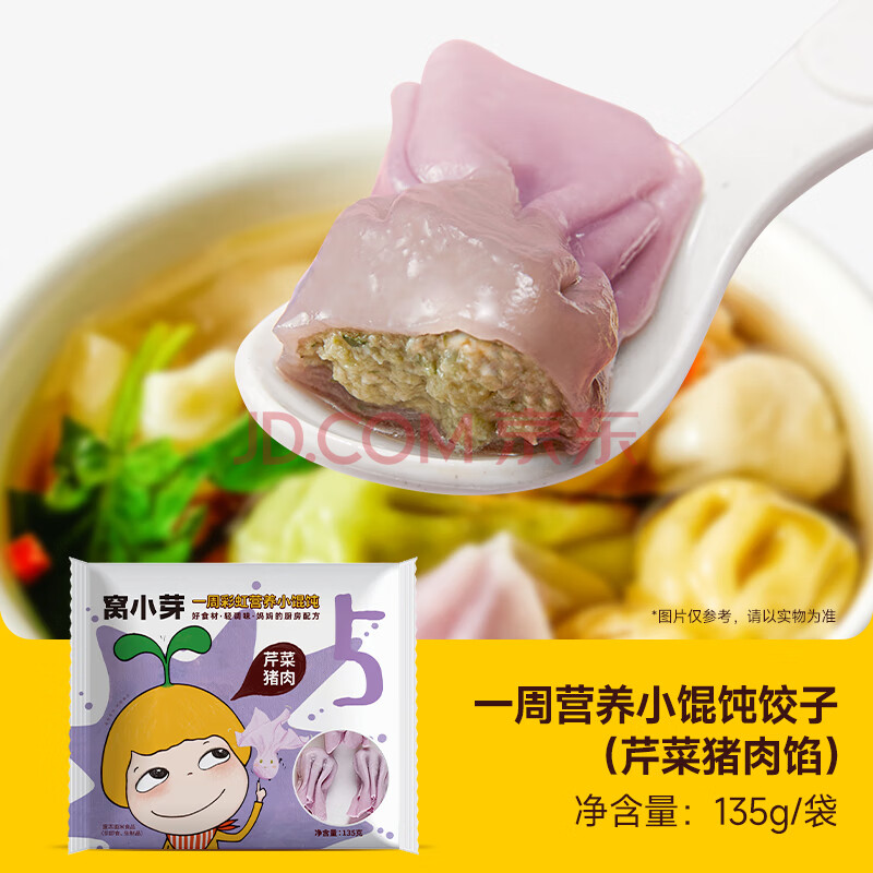 商品相册:窝小芽一周营养小馄饨饺子儿童早餐食品无添加味精色素135g(芹菜猪肉)第