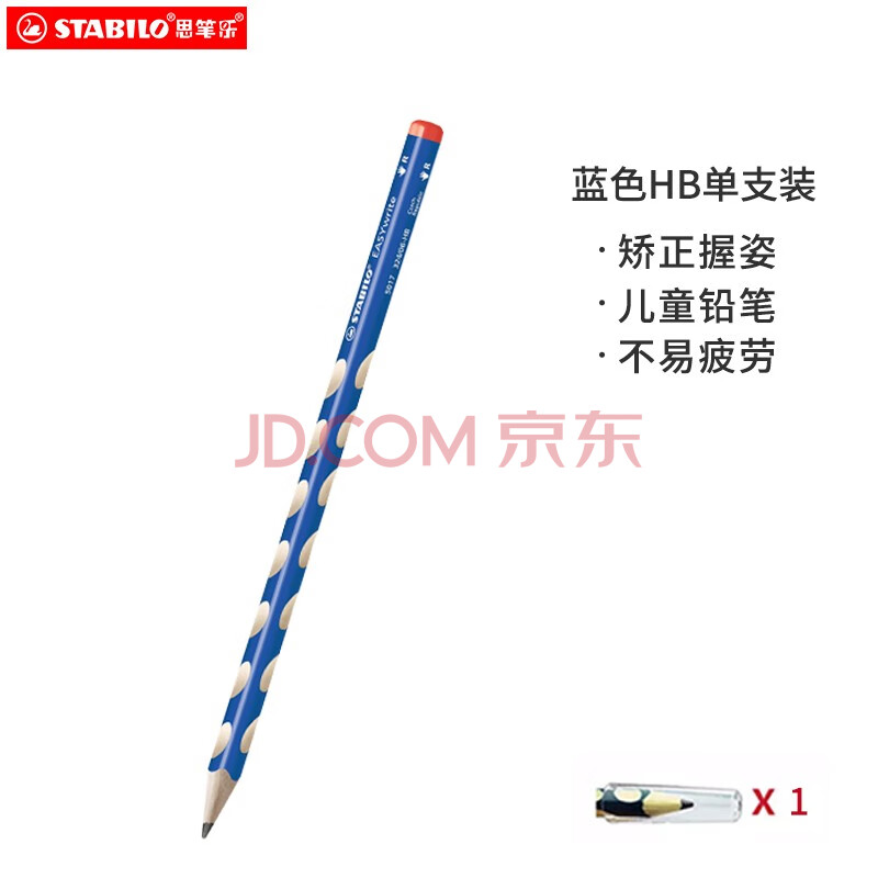商品相册:思笔乐(STABILO)洞洞铅笔 小学生文具 HB铅笔 儿童矫正握姿324蓝色单支装(含笔帽)第
