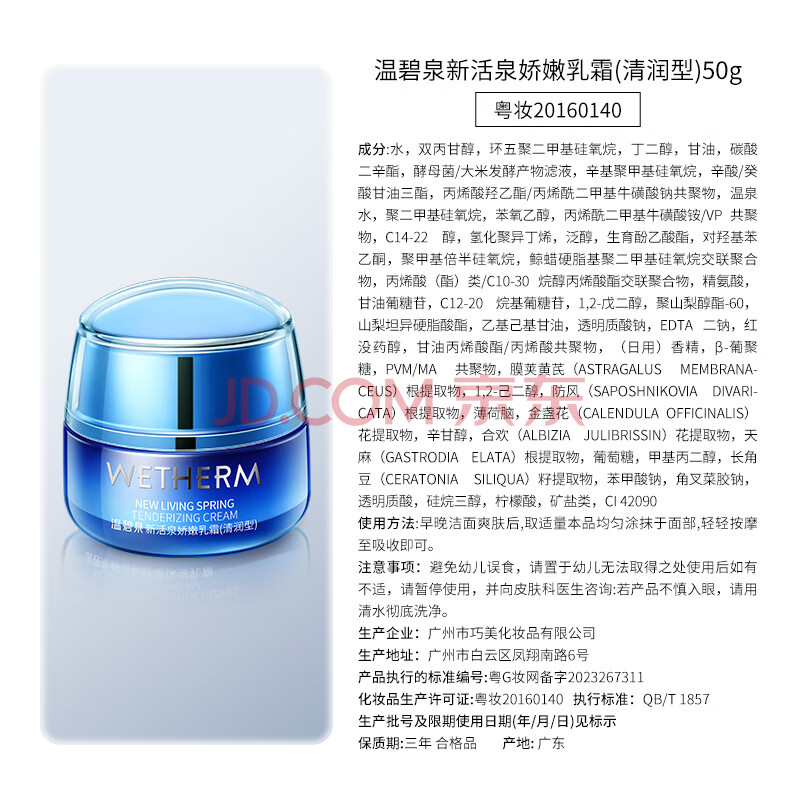 商品相册:温碧泉面霜新活泉娇嫩保湿乳霜50g 护肤化妆品男女适用 补水滋润 泛醇第