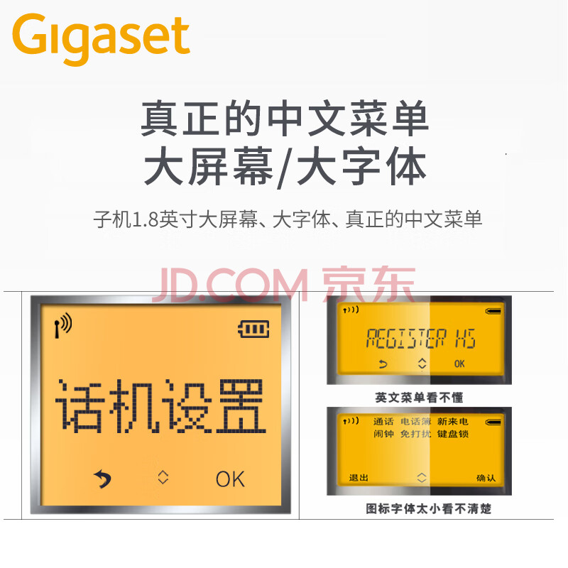 商品相册:Gigaset原西门子无绳电话机子母机中文双天线长距离信号家用办公无线固定电话座机一拖一DL310黑A280升级第