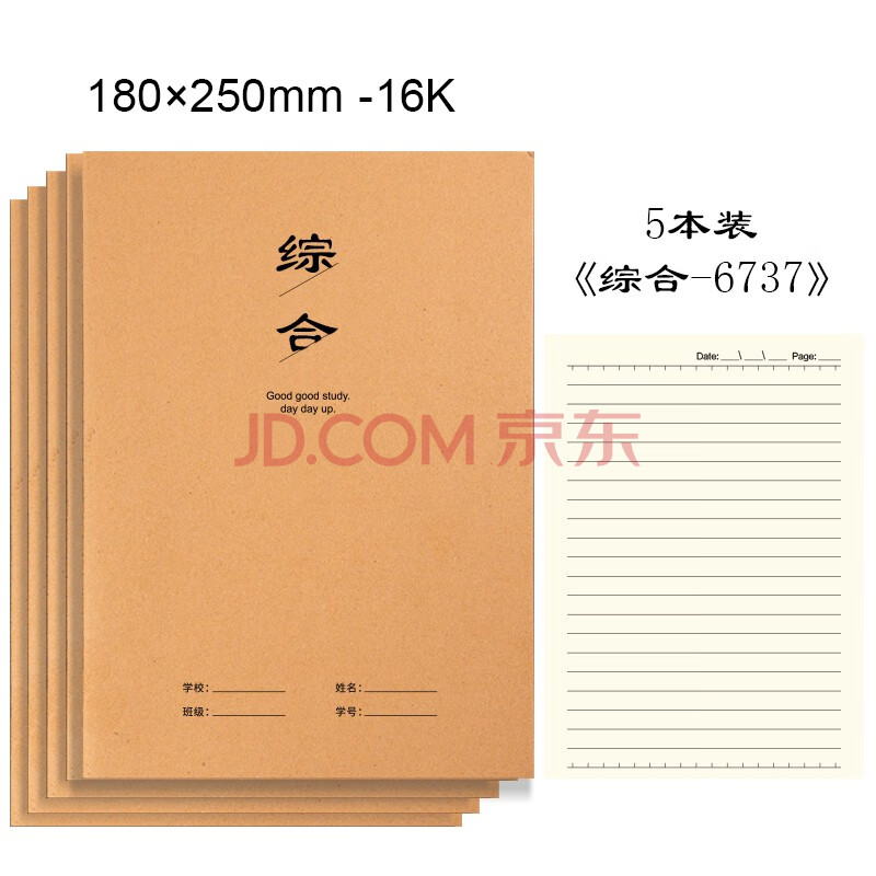 商品相册:金隆兴 【5本装】牛皮纸科目本 B5初中高中生课堂错题本作业本笔记本记事笔记本子 综合本5本装6737第