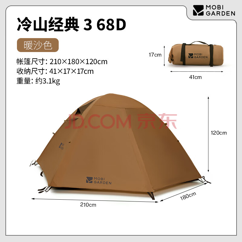 商品相册:牧高笛(MOBIGARDEN)冷山3帐篷 户外露营徒步防风防雨三人帐篷 NXZQU61008 暖沙色第