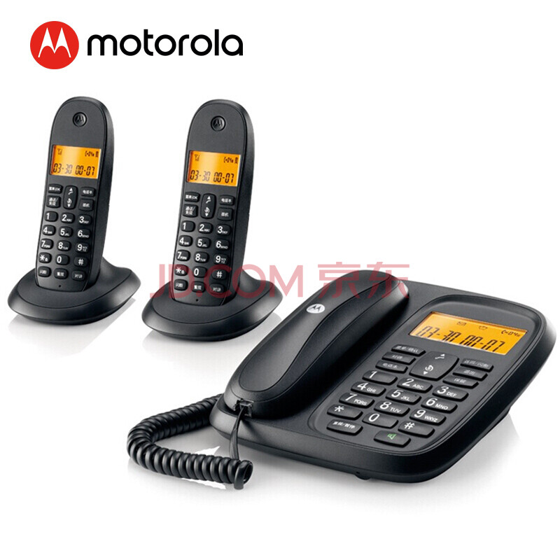 商品相册:摩托罗拉(Motorola)数字无绳电话机 无线座机 子母机一拖二 办公家用 中文显示 双免提套装CL102C(黑色)第