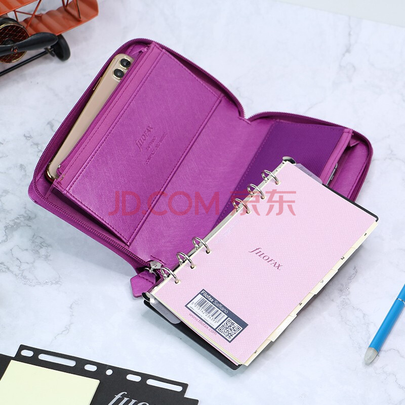 商品相册:Filofax记事本英国进口高档活页手帐本多功能软皮面拉链手包礼盒装saffiano系列A6树莓色022535第1张/共8